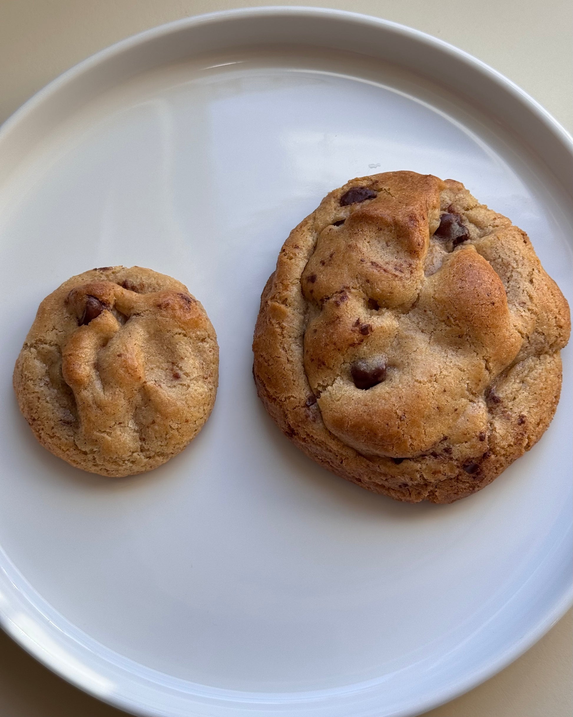 Your favorite brown butter chocolate chip cookie in an XL 1/4 lb size! Because sometimes bite sized just isn't enough!